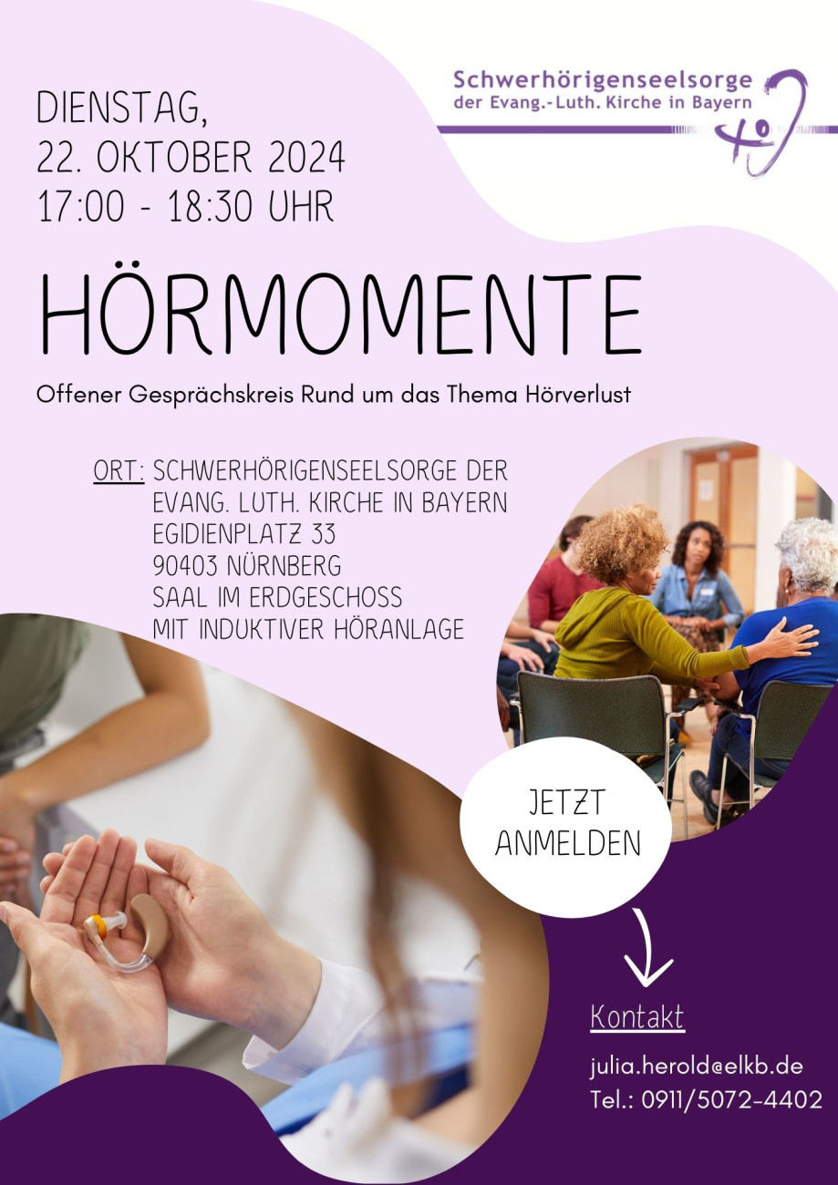Ort: Schwerhörigenseelsorge der ELKB, Egidienplatz 33, 90403 Nürnberg, Saal im EG (mit induktiver Höranlage)