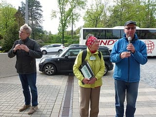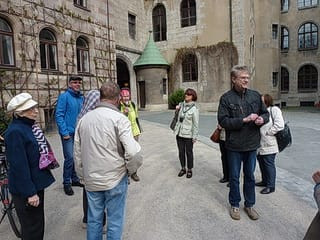 Bei schönem, aber sehr kaltem Wetter fand am 3. Mai die Führung durch Stein statt, barrierefrei für Schwerhörige und Gehörlose. Es war eine Außenführung, ohne Besichtigung des Faber-Castell-Schlosses, organisiert von Rolf Hörndlein (Schwerhörigenseelsorge der ELKB), Johannes Kröner (Kath. Hörgeschädigtenseelsorge) und dem Nürnberger Institut "Geschichte für Alle e.V.".